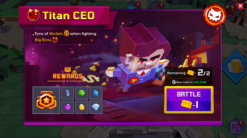 A different gameplay with the main mode, CEO Boss Fight is a brand new way to get tons of Medals and Crystals.